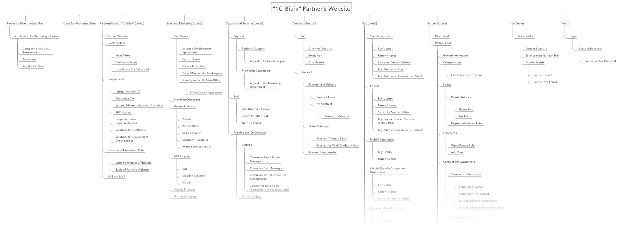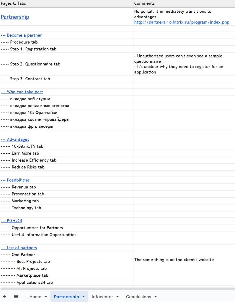 Initially, I reviewed the structures of both the client’s and partner’s websites in the 1C-Bitrix ecosystem to gain a deeper understanding of the website content.