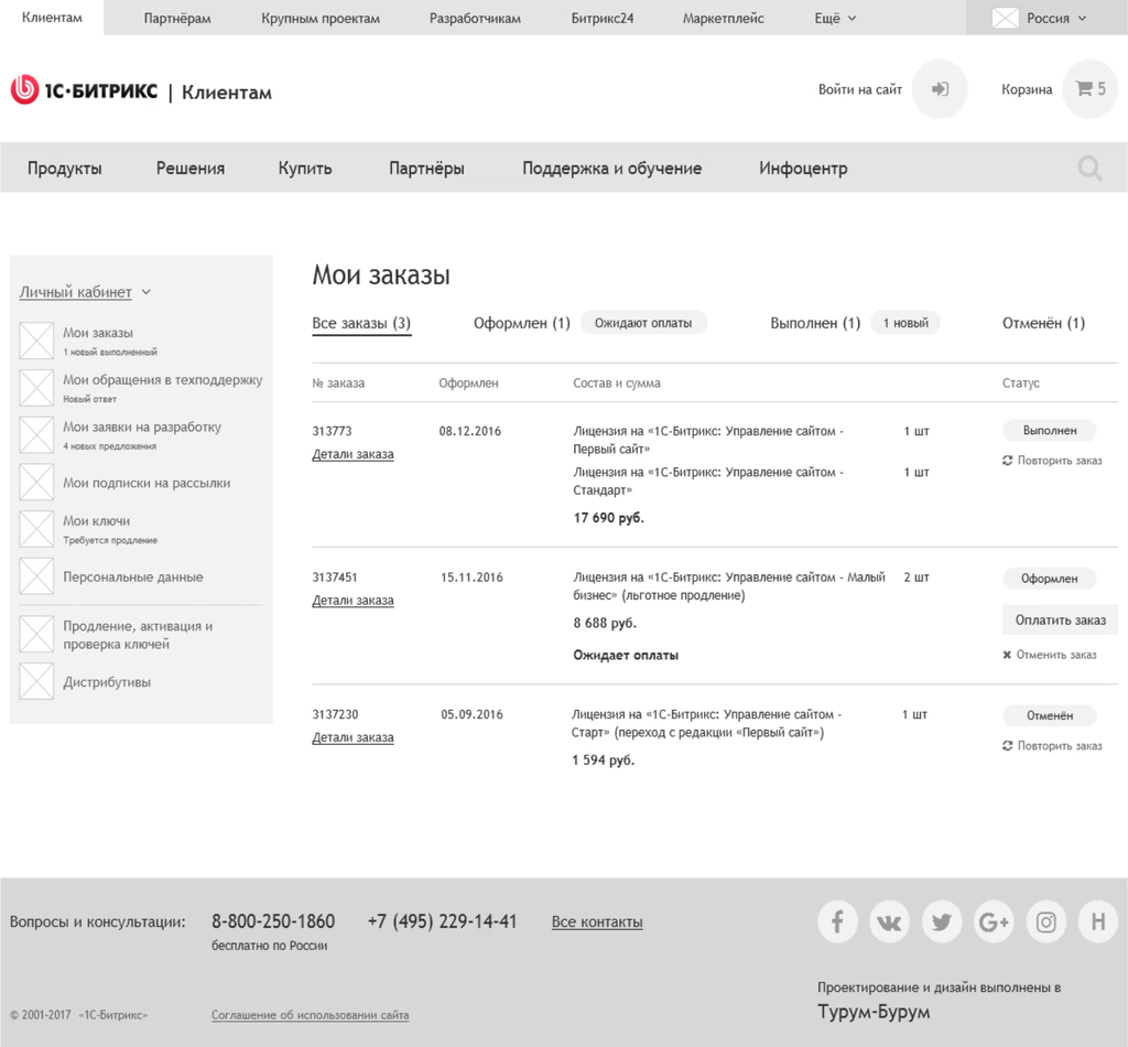 web projects have been developed on 1C-Bitrix
