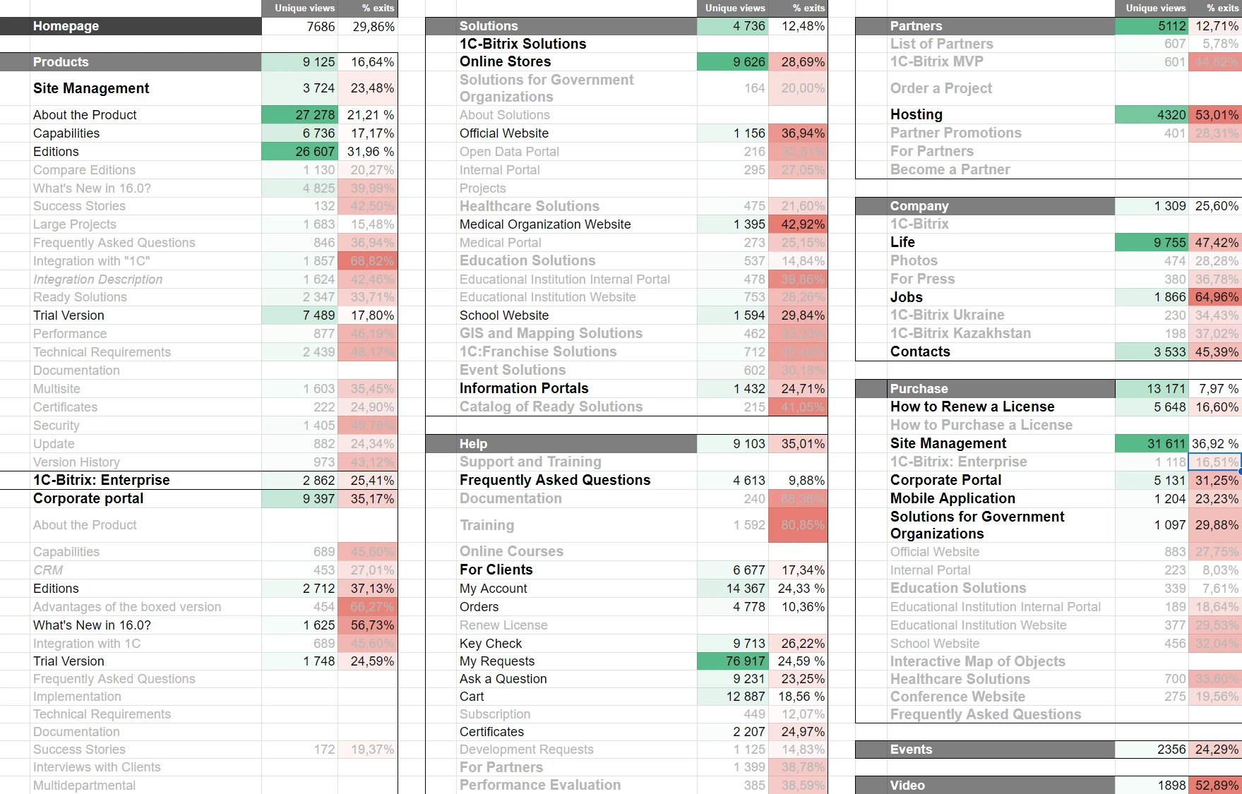 We then developed a map based on analytics data, highlighting the most and least visited sections of the site.