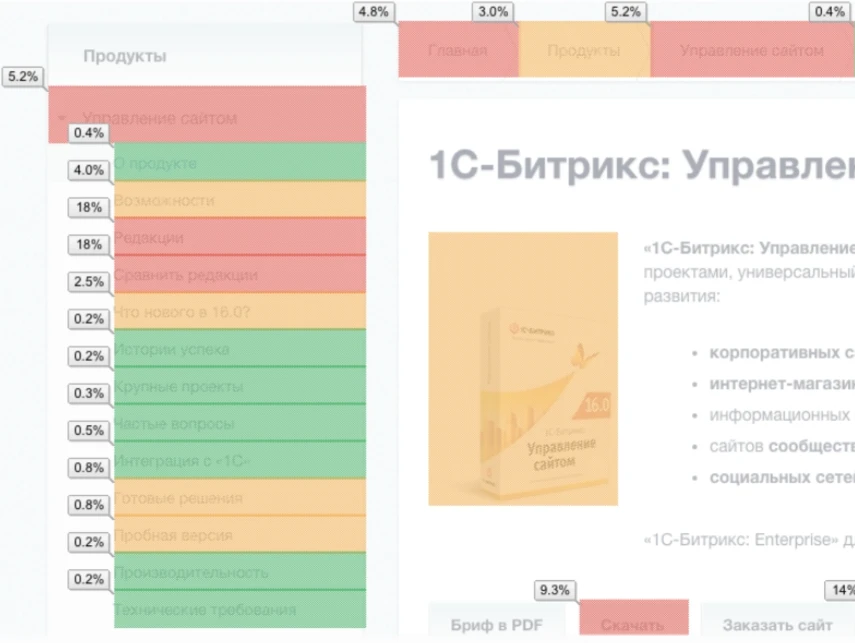 Users trying to find "their" product move chaotically among various products and solutions on the client’s site, failing to find the necessary information.